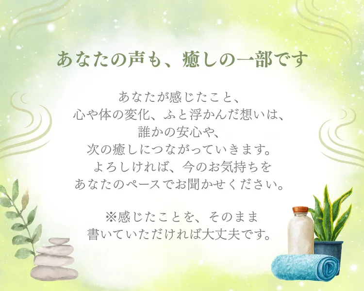 みなさまの率直なお声をいただくことで、より良いサロンづくりにご協力ください。